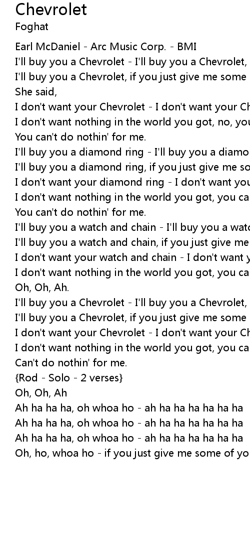 I'll buy you a Chevrolet - I'll buy you a Chevrolet, |
