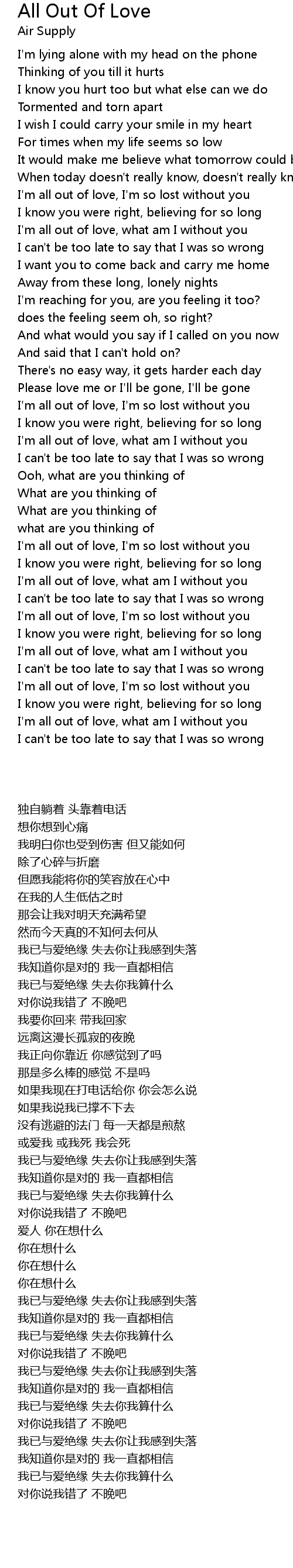 I'm all out of love, I'm so lost without you |