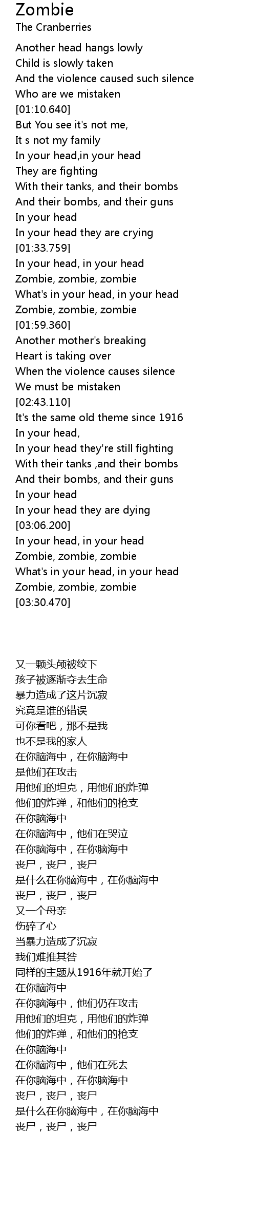 | [03:23.520] | Zombie, zombie, zombie |