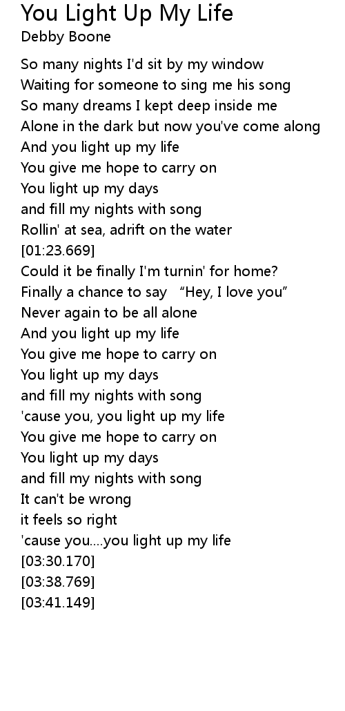 | [02:24.879] | 'cause you, you light up my life |
