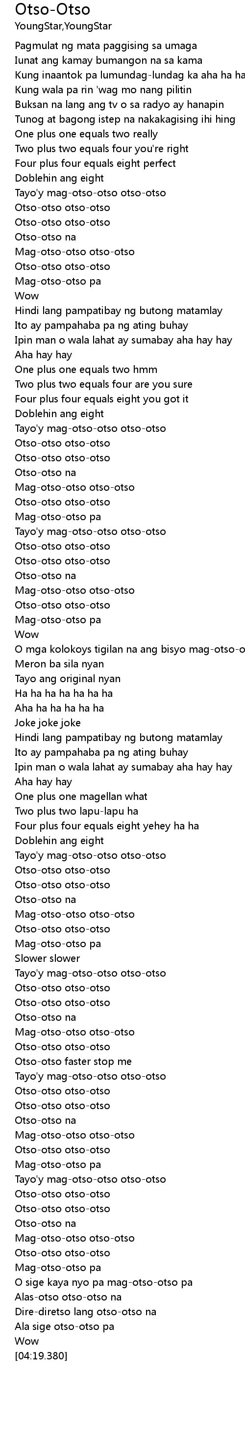 | [04:11.820] | Ala sige otso-otso pa |
