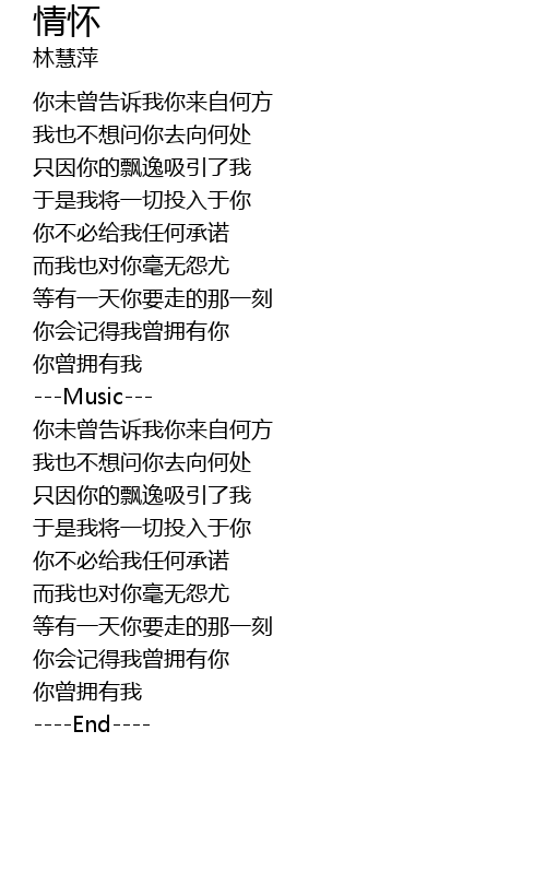 | [02:28.37] | 而我也对你毫无怨尤 |