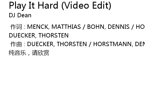 | Song | Play It Hard (Video Edit) |