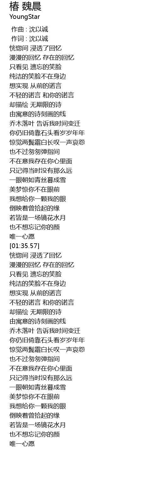 | [00:00.010] | 作词 : 沈以诚 |