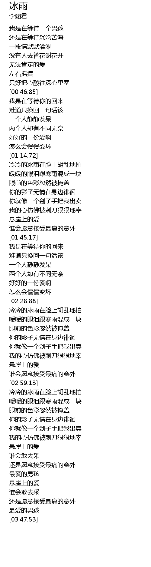 | [03:02.80] | 冷冷的冰雨在脸上胡乱地拍 |
