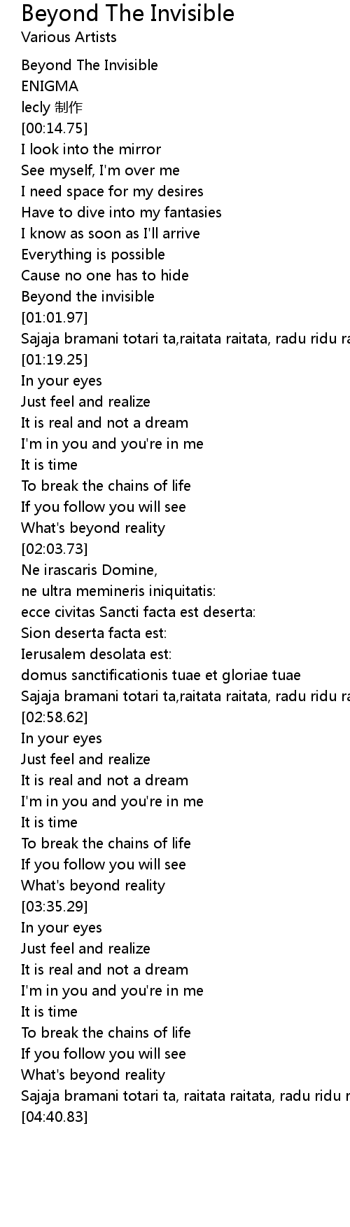 | [02:39.93] | Sajaja bramani totari ta, raitata raitata, radu ridu raitata, rota |