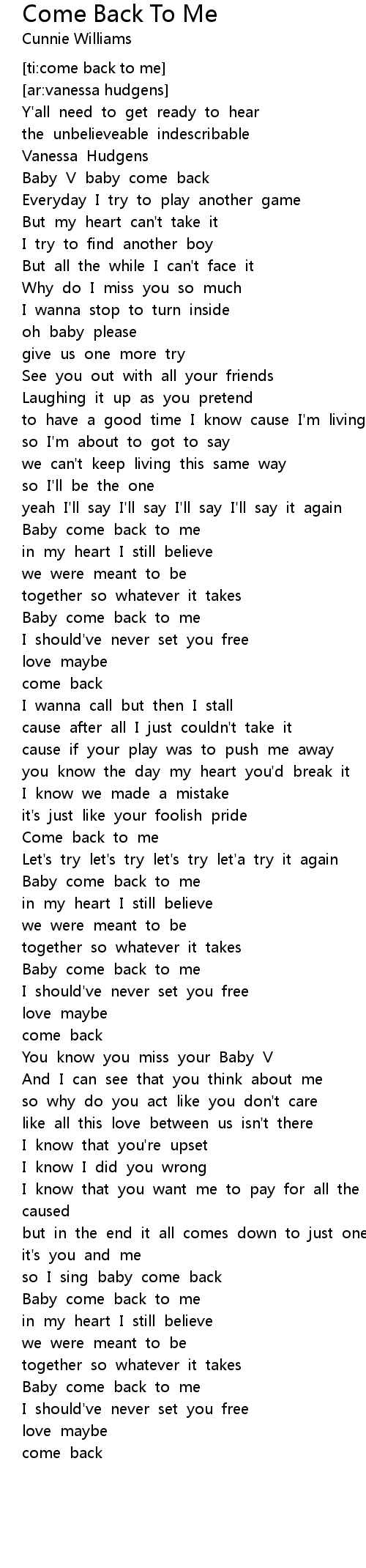 Baby come back to me |