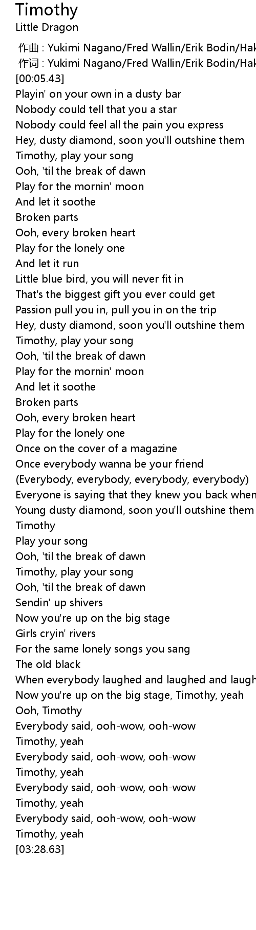 | [01:48.61] | Timothy |