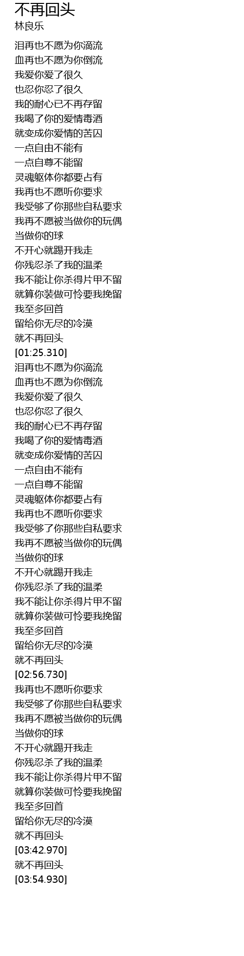 | [03:46.210] | 就不再回头 |