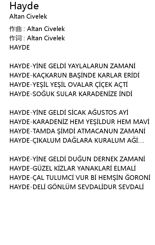 | HAYDEY NE GELD YAYLALARUN ZAMAN | |