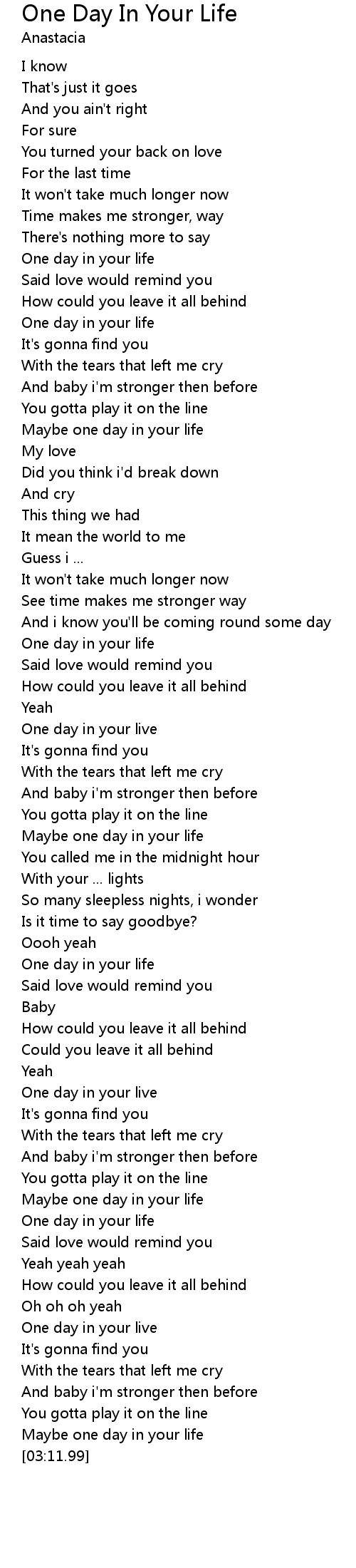One day in your life |