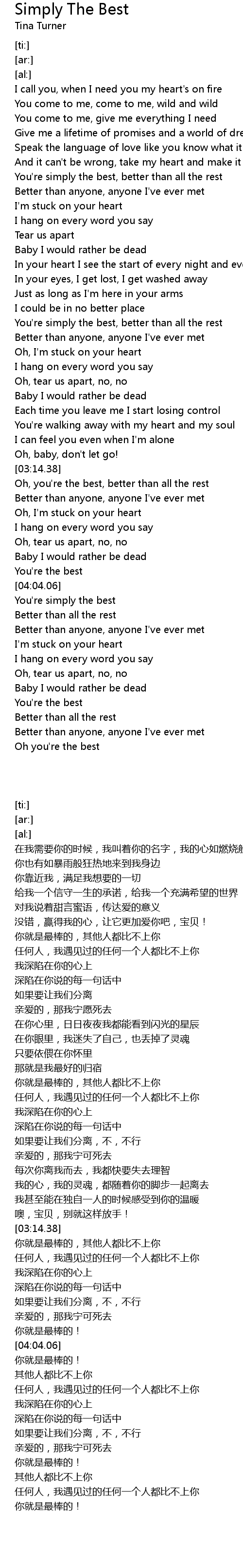 You're simply the best, better than all the rest |