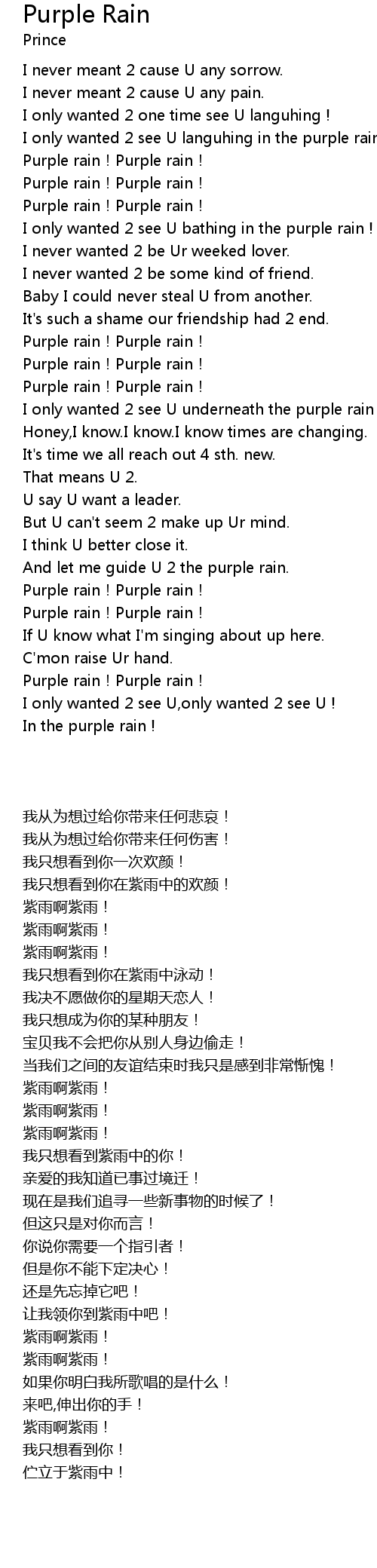 | [02:28.05] | I only wanted 2 see U underneath the purple rain! |