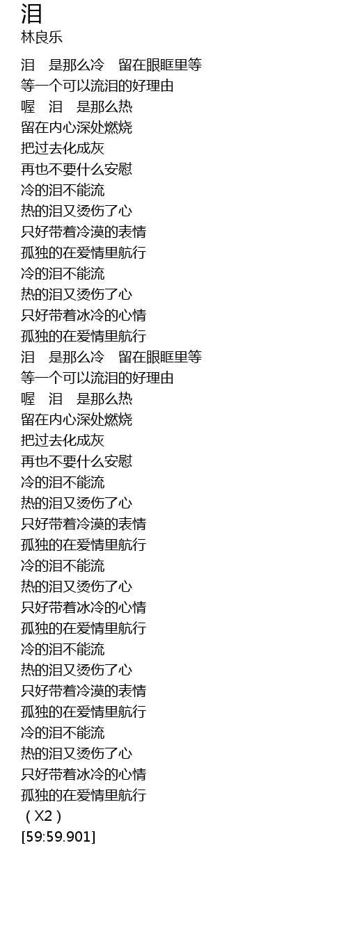 [00:09.989] 泪 是那么冷 留在眼眶里等