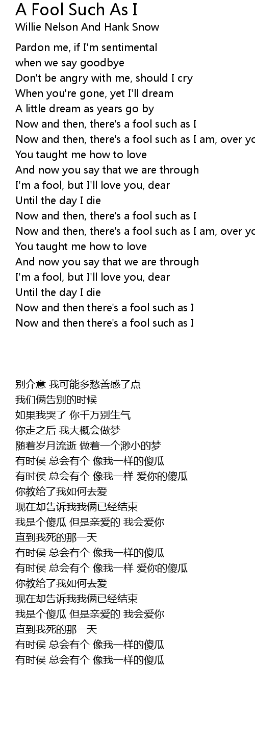 Now and then there's a fool such as I |