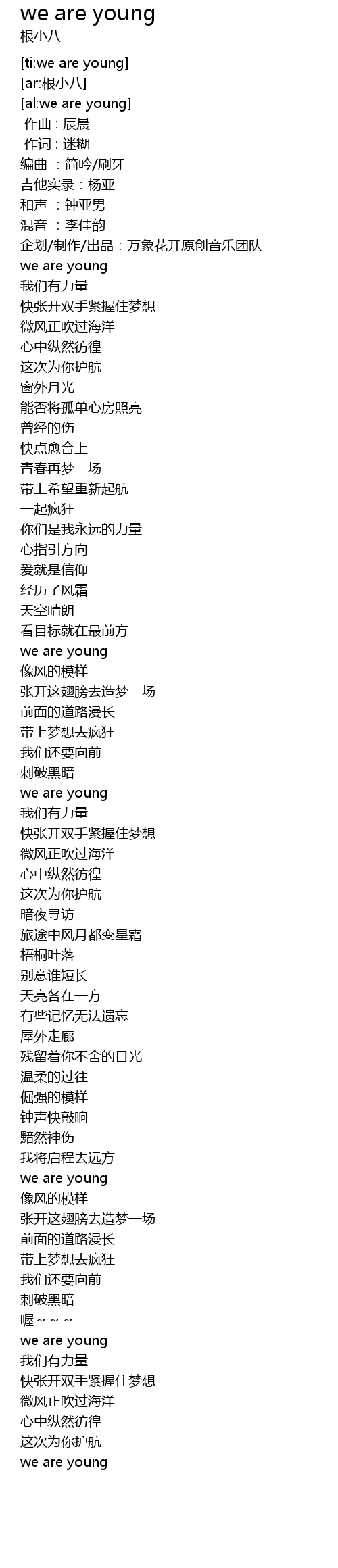 | [01:01.74] | nǐ men shì wǒ yǒng yuǎn de lì liàng |