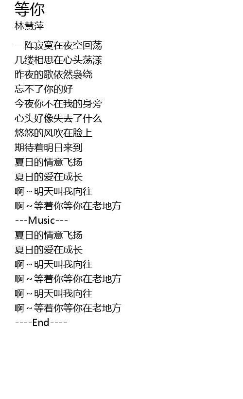 | [02:47.81] | 啊~等着你等你在老地方 |