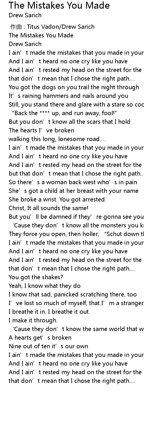 | [00:00.01] | The Mistakes You Made |
