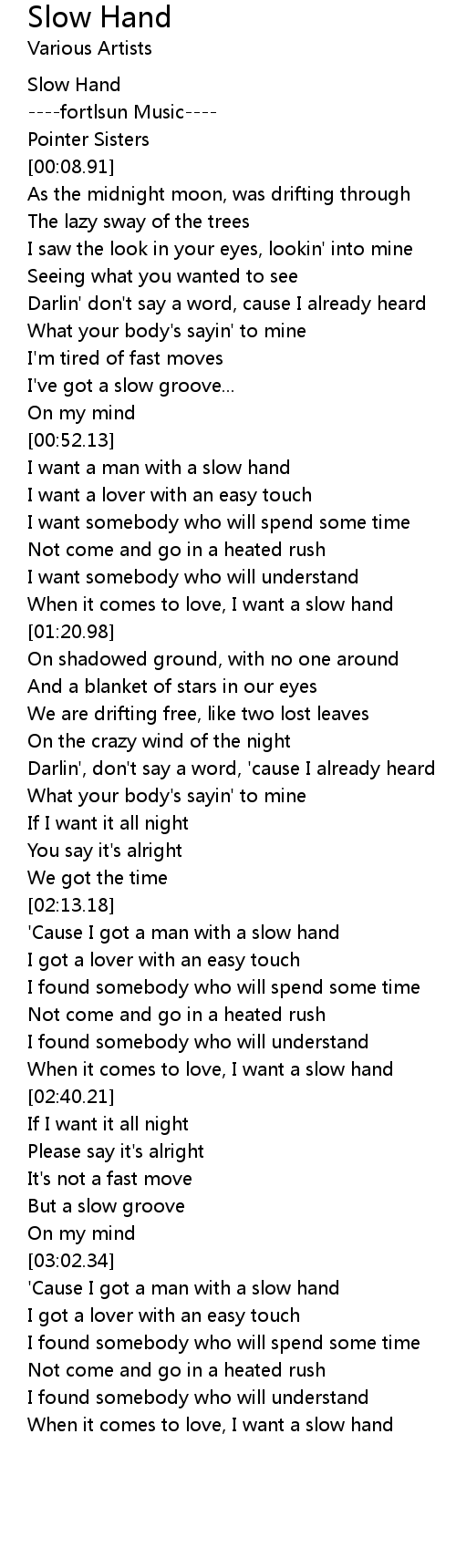 I want a man with a slow hand |