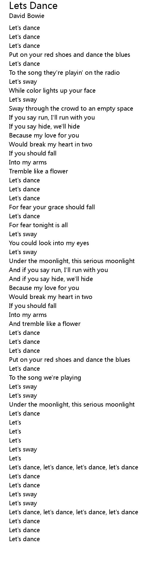 Let's dance, let's dance, let's dance, let's dance |