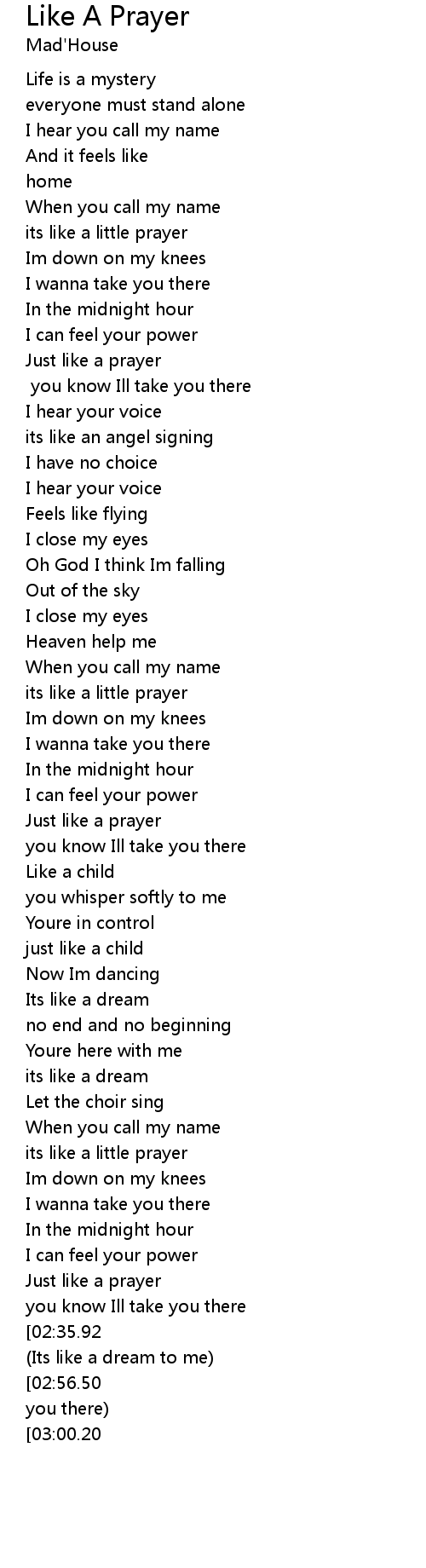 Like A Prayer Lyrics