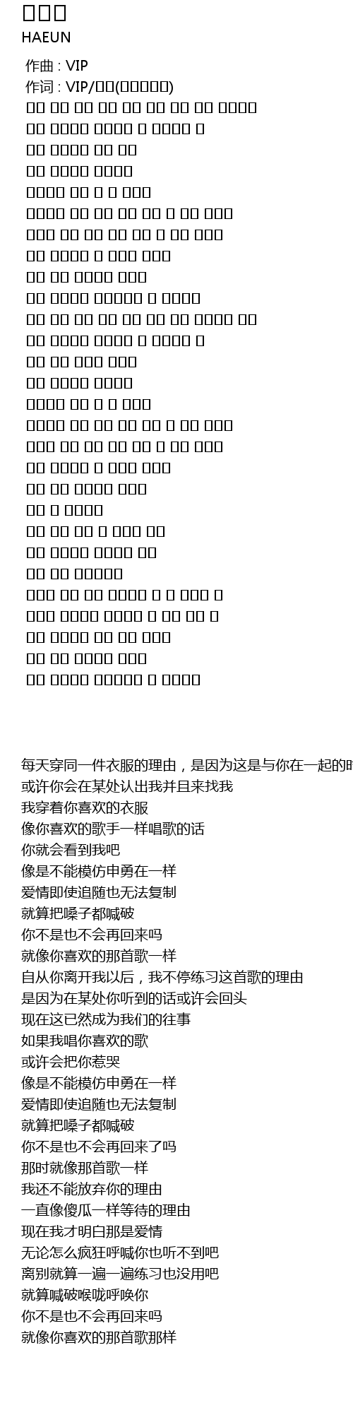 作词 : VIP/하은(라코스테남) |
