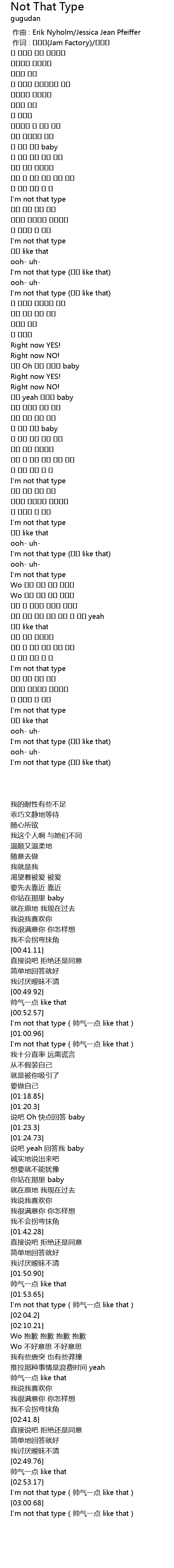 | Song | Not That Type |