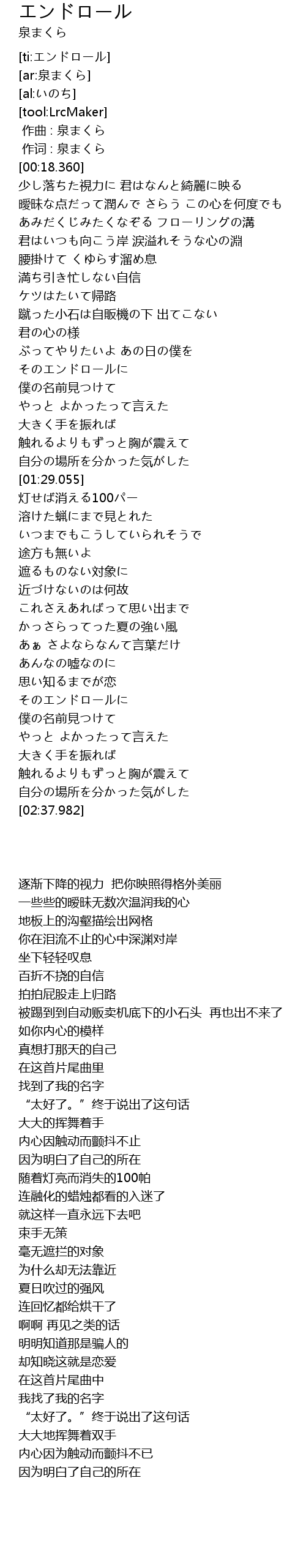 | [ti:エンドロール] | |