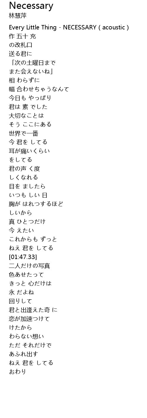 | [00:02.67] | Every Little Thing NECESSARY acoustic |