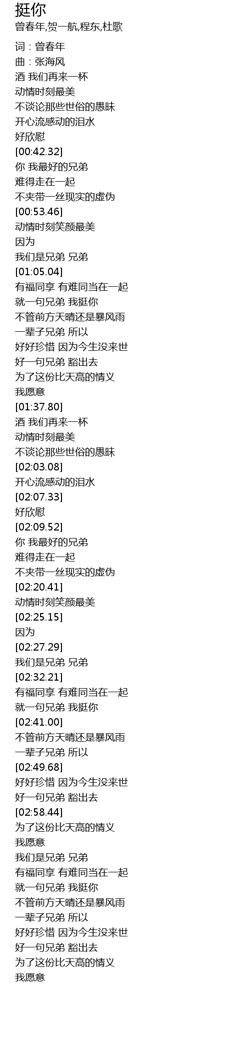 | [02:36.70] | 就一句兄弟 我挺你 |