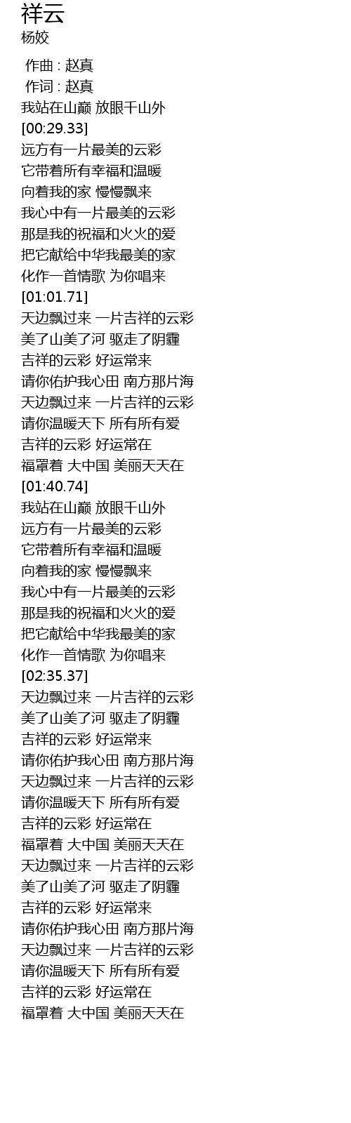 | [02:45.38] | 吉祥的云彩 好运常来 |