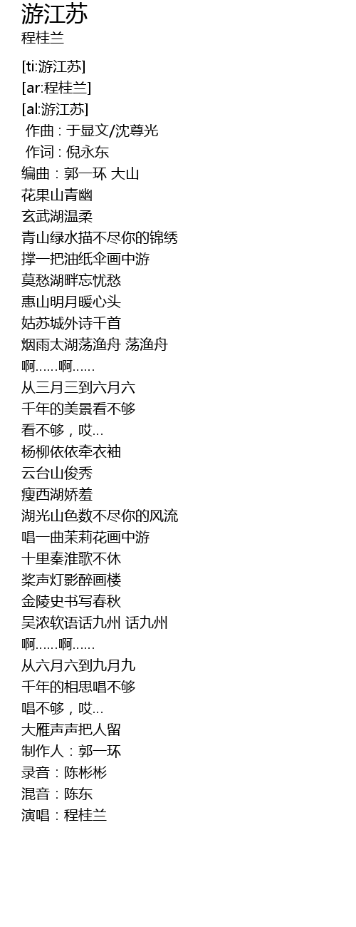 | [01:13.69] | yān yǔ tài hú dàng yú zhōu dàng yú zhōu |