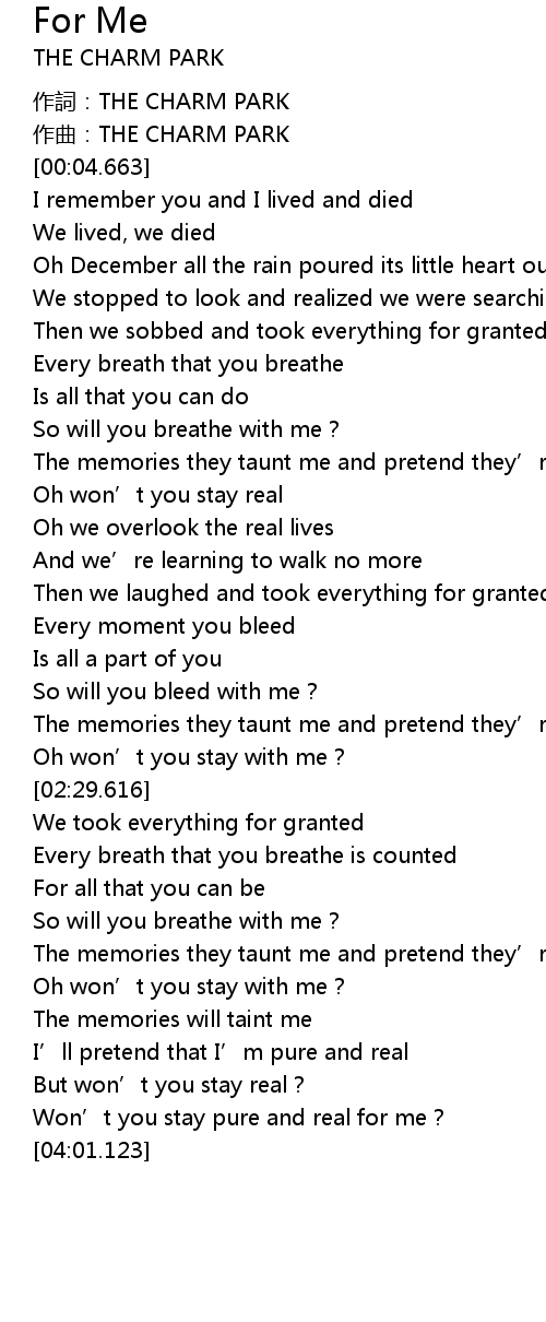 | [03:53.913] | Won' t you stay pure and real for me? |