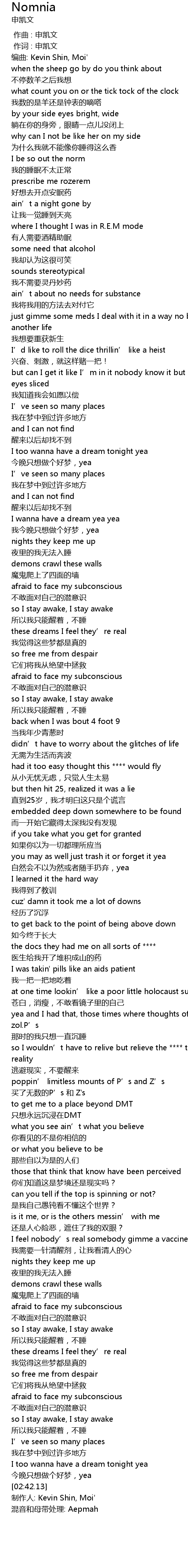 | [00:08.35] | 编曲: Kevin Shin, Moi' |