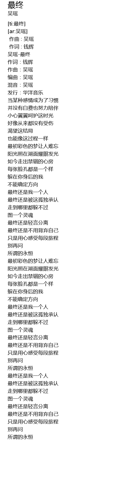 | [00:02.952] | 编曲:吴瑶 |