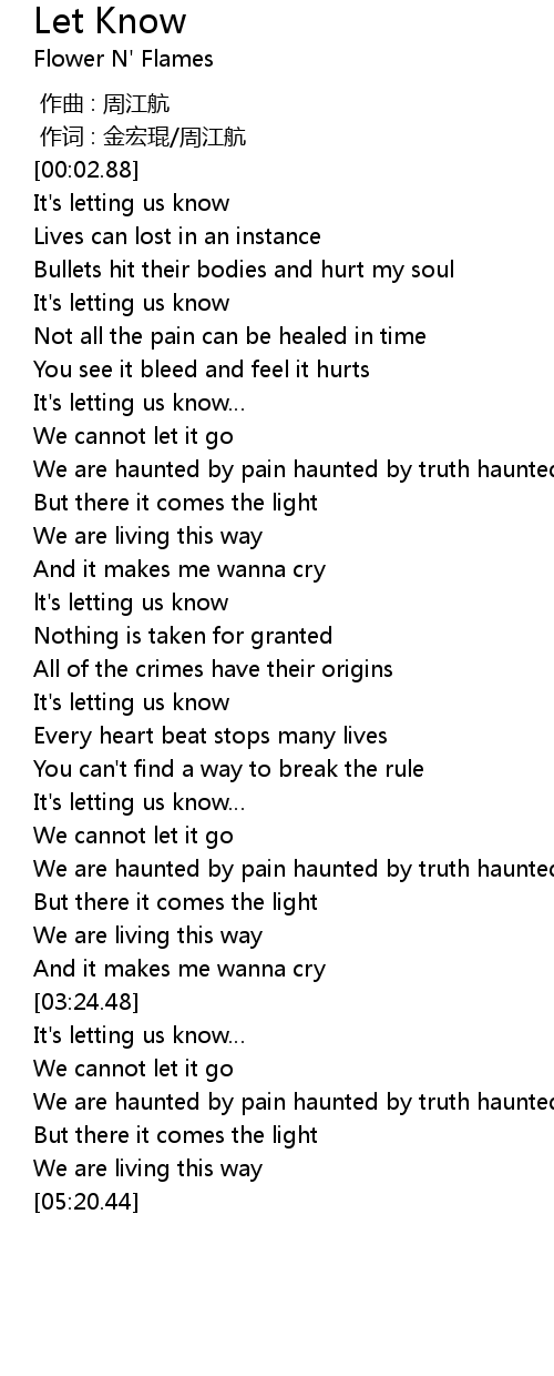 | [03:00.26] | We are haunted by pain haunted by truth haunted by fear |