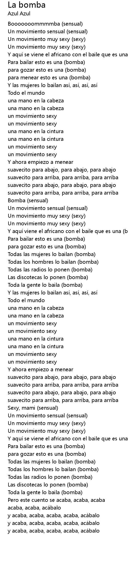 | Song | La bomba |