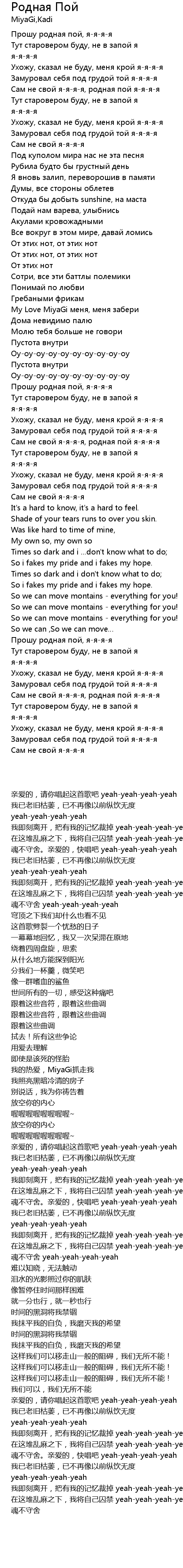 Прошу родная пой, я-я-я-я |