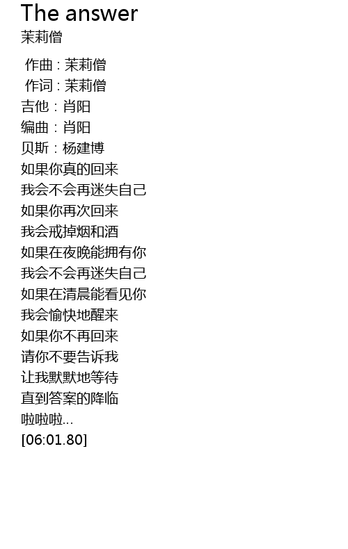 | [00:01.000] | 作词 : 茉莉僧 |
