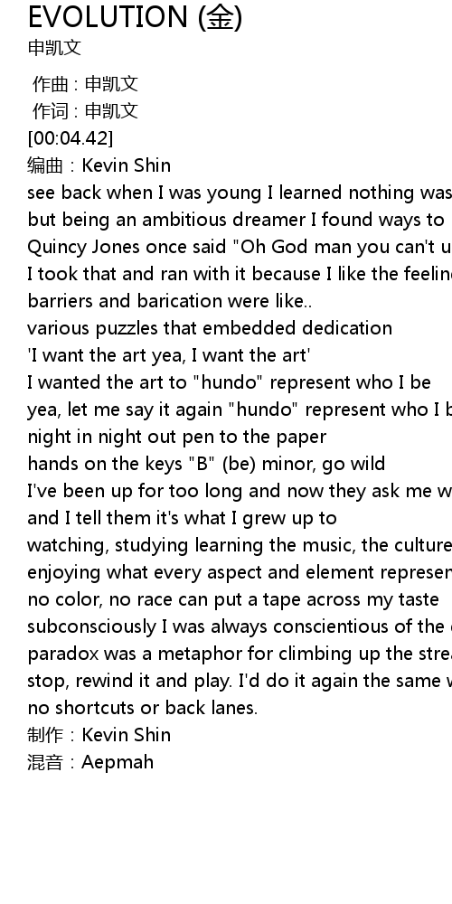 | [00:05.11] | biān qǔ: Kevin Shin |
