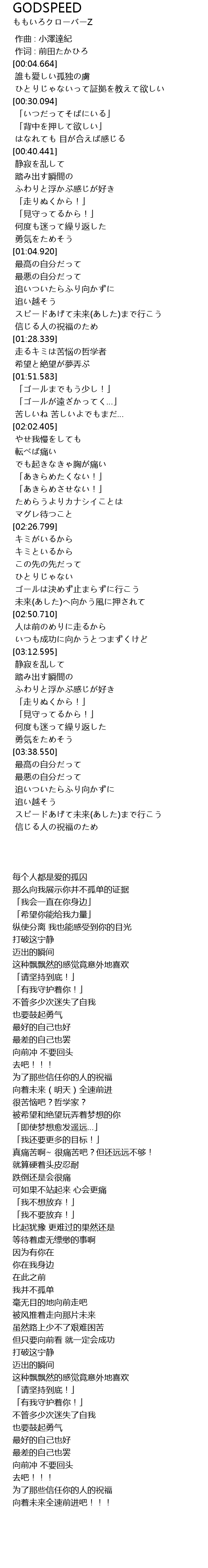 | [01:16.846] | スピードあげて未来(あした)まで行こう |