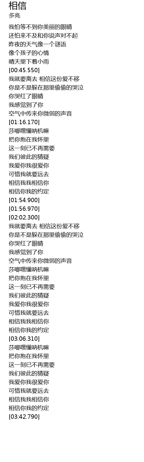 | [03:30.640] | 相信我我相信你 |