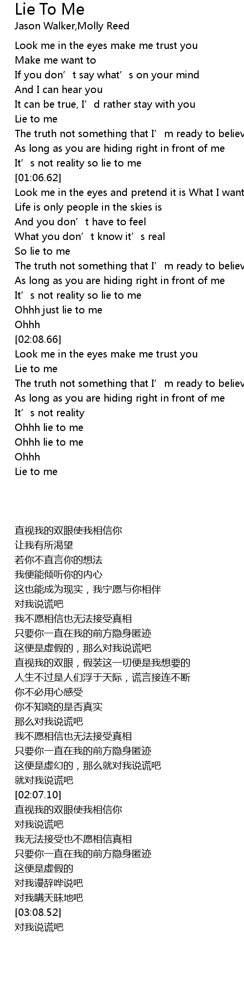 | [03:00.56] | Ohhh lie to me |