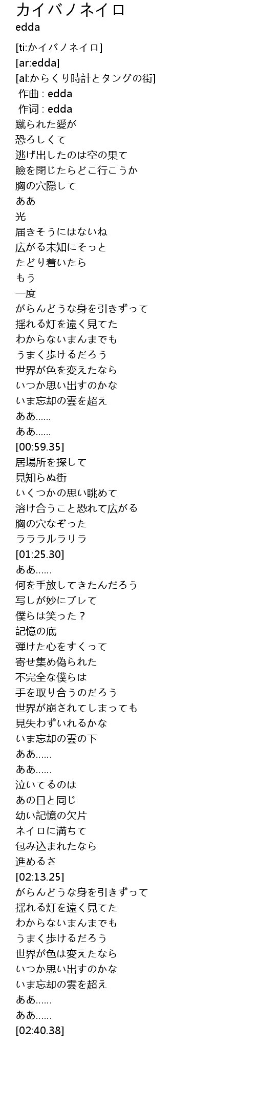 [ti:かイバノネイロ] |