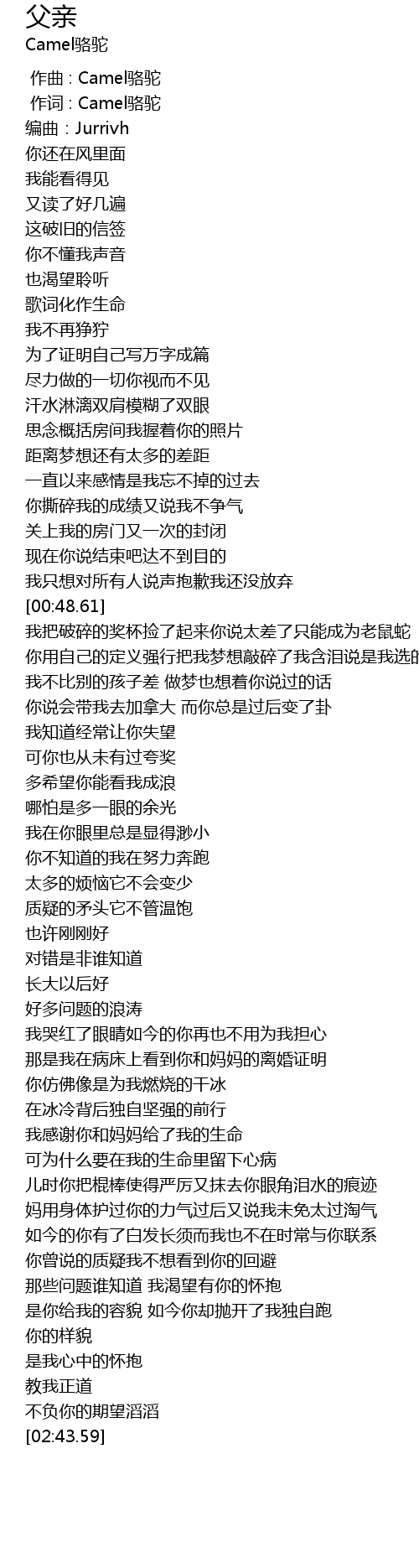 | [01:51.96] | 我感谢你和妈妈给了我的生命 |