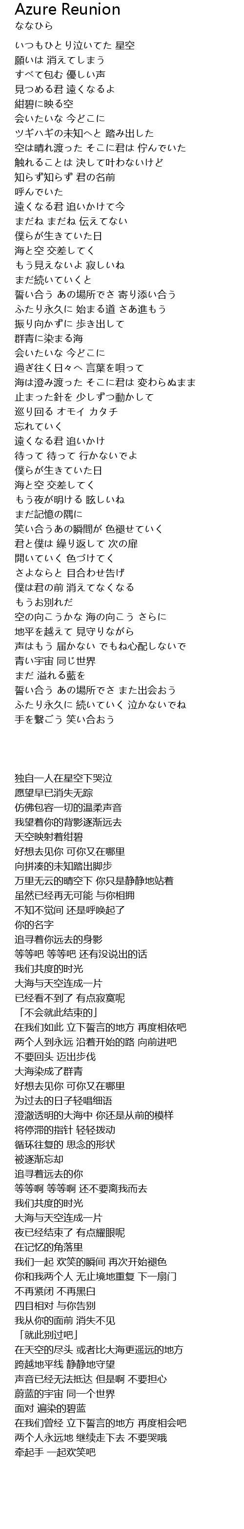 | [00:42.786] | 紺碧に映る空 |