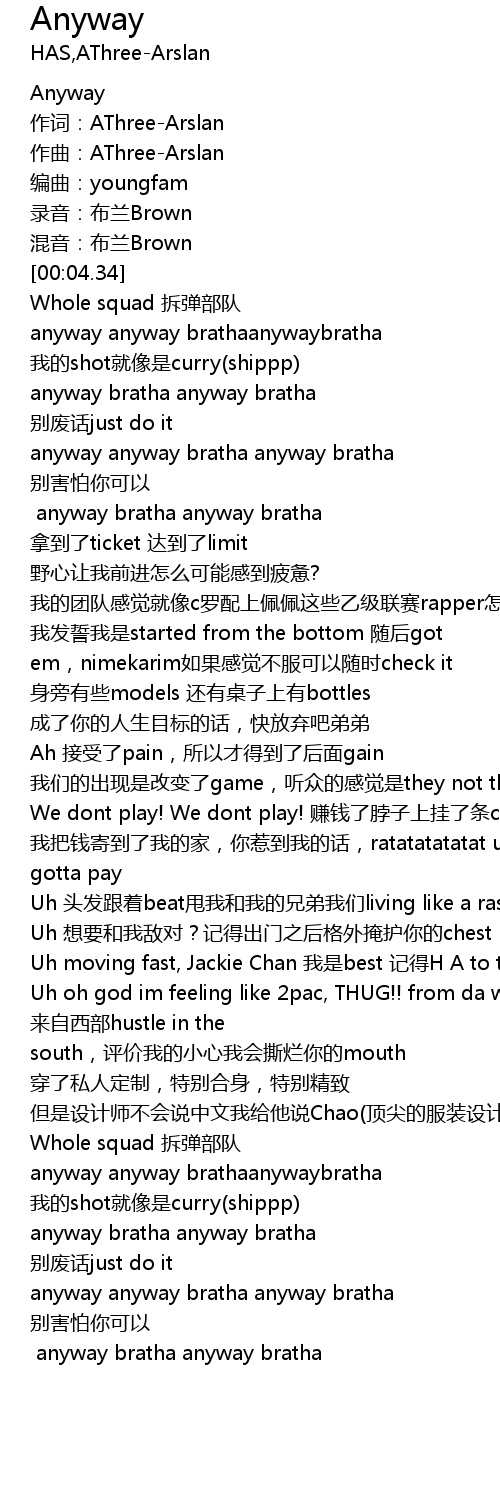 | [00:17.98] | anyway anyway bratha anyway bratha |