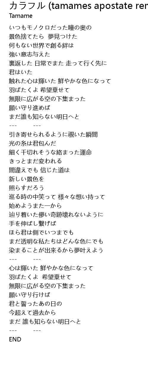 | [04:06.79] | 羽ばたくよ 希望乗せて |