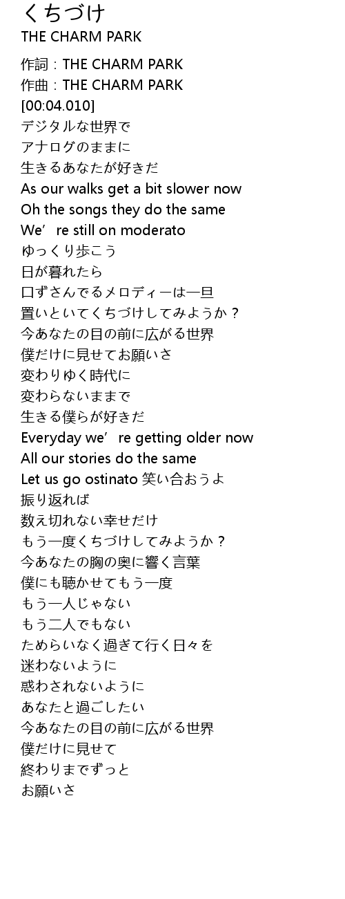 | [00:00.509] | 作詞:THE CHARM PARK |