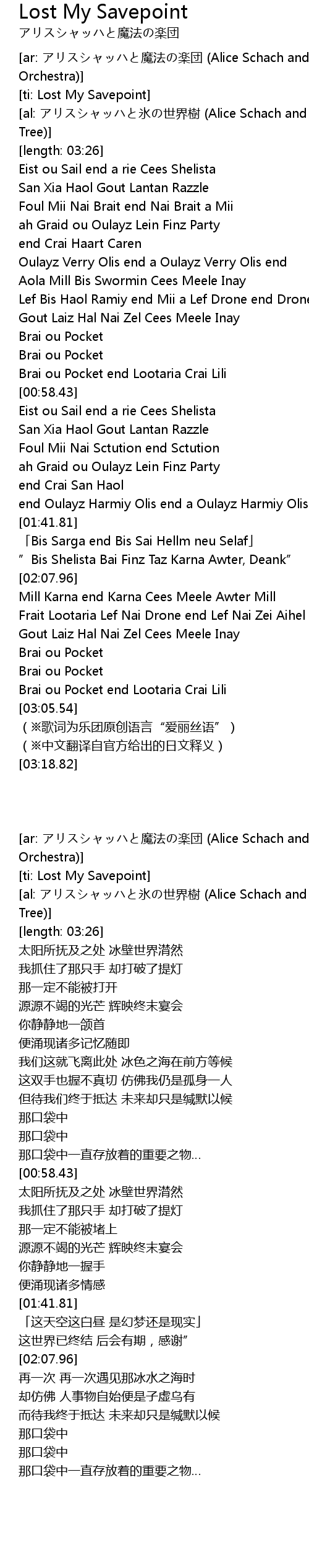 | [03:12.01] | (※歌词为乐团原创语言“爱丽丝语”) |